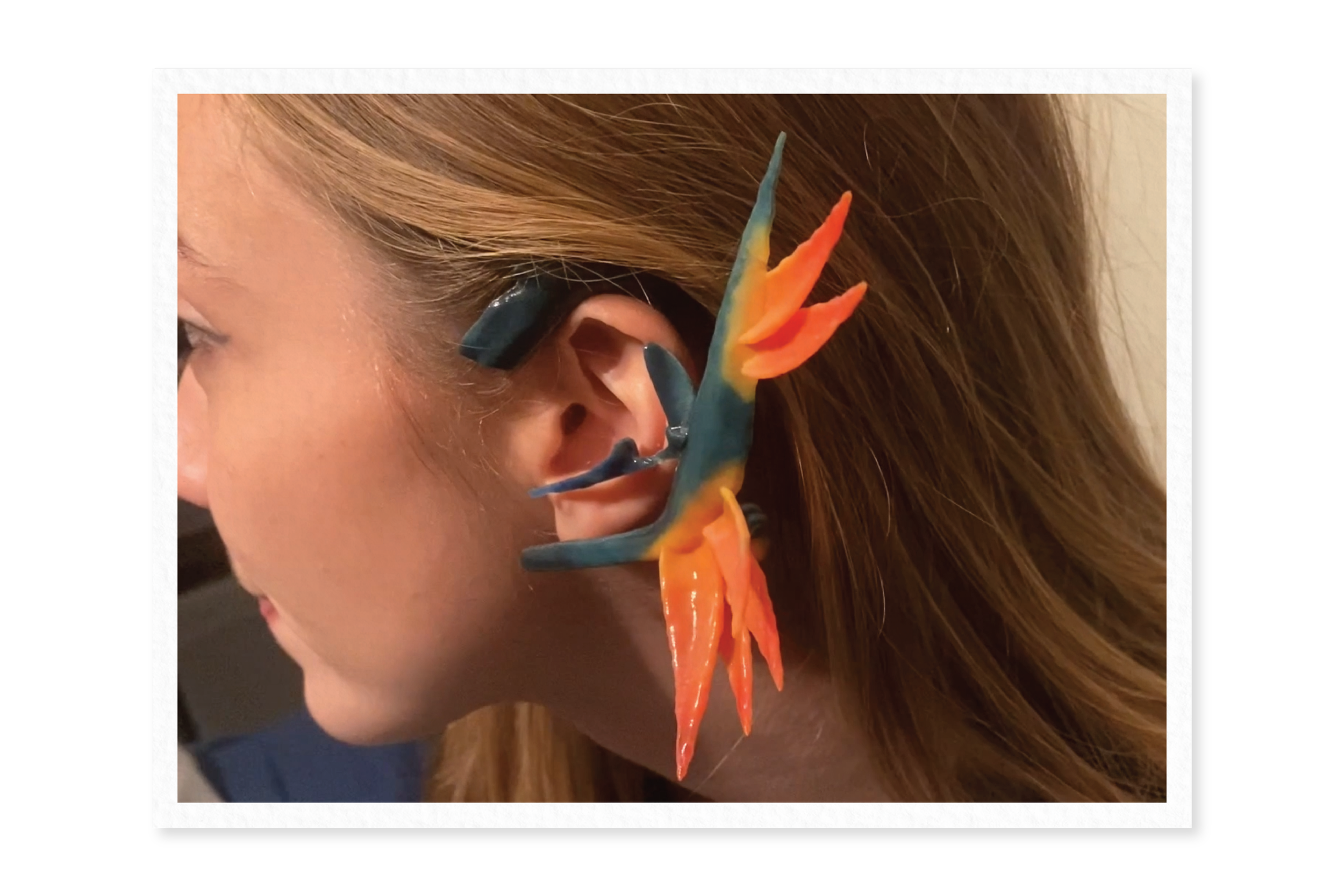 Long Beach, California is full of Strelitzia, widely known as the “Bird of Paradise” plant. Inspired by its natural form, I developed an ear cuff design using various technologies. Learn more with my Instructable on my process.