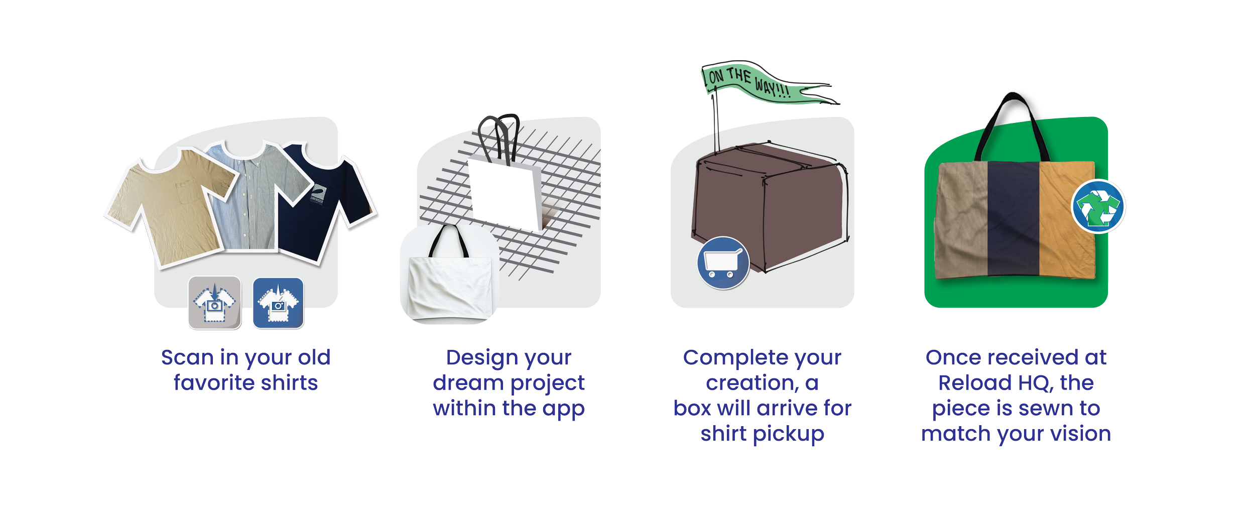 Old shirts typically find a second life in a younger sibling’s closet or on the thrift store shelf. But sometimes, it's hard to part with certain pieces. That's where Reload comes in. While this cycle is efficient, there are often shirts that we find hard to part with. Reload service app seamlessly transforms beloved but worn-out shirts into new softgoods to be further appreciated in a new form.
