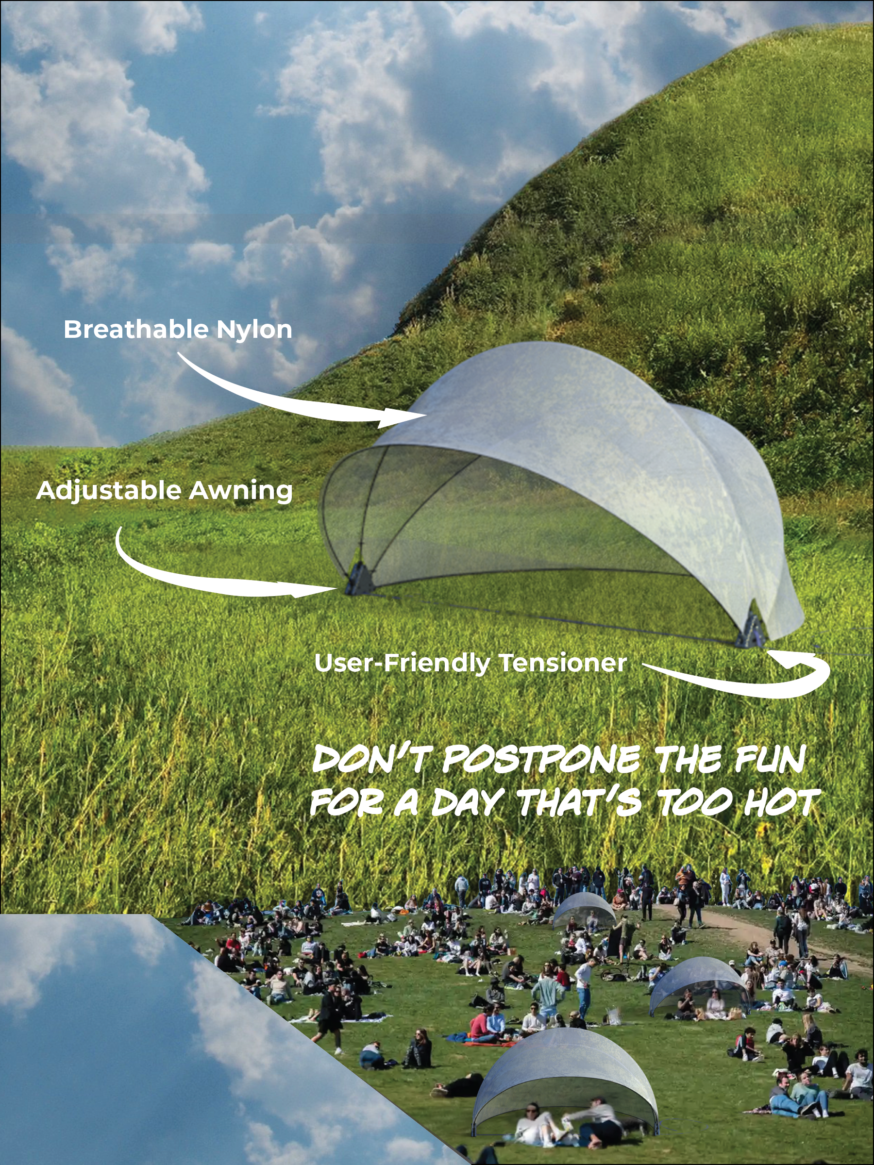 Ten2FourProduct Design | 2022Recreational shade structure. Inspired by the forest canopy. For days out when it’s too hot.